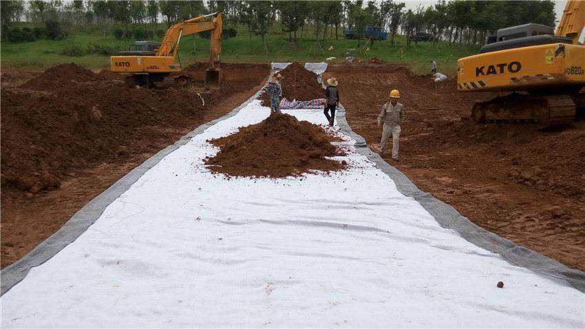 復(fù)合土工膜與防水毯結(jié)合使用的施工是:有些工程的防滲像人工湖、水庫(kù)等在選址后發(fā)現(xiàn)庫(kù)地或湖底的地基不是粘土層,而是沙礫層,這樣的基礎(chǔ)表面顆粒凸起嚴(yán)重并松軟,如果直接鋪設(shè)復(fù)合土工膜的話,會(huì)對(duì)膜造成破壞,還由于松軟的原因,水壓對(duì)膜的壓力不均勻,長(zhǎng)期使用容易出現(xiàn)破洞滲漏,這時(shí)就需要用混凝土或是放水毯來(lái)重新把基層做好做實(shí),現(xiàn)在大部分是采用鋪設(shè)放水毯,這樣省時(shí)省力,加快工程建設(shè)進(jìn)度,成本還低,所以在防滲工程基層是沙礫或是更為復(fù)雜惡劣的需要防水毯+復(fù)合土工膜結(jié)合施工。